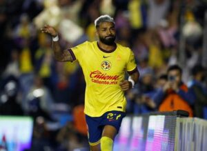 Foto de archivo de Rodrigo Aguirre celebrando tras anotar un gol con América. Estadio Ciudad de los Deportes, Ciudad de México, México. 27 de noviembre de 2024.