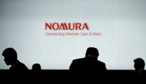 FILE PHOTO: Investors stand in front of a screen showing the logo of Nomura Holdings in Tokyo, Japan, December 1, 2015. REUTERS/Toru Hanai/File Photo