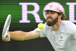 FILE PHOTO: Mar 5, 2025; Indian Wells, CA, USA; Reilly Opelka (USA) hits a shot in his first round match against Roman Safiullin (RUS) during the BNP Paribas Open at the Indian Well Tennis Garden. Mandatory Credit: Jayne Kamin-Oncea-Imagn Images/File Photo