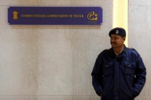 FILE PHOTO: A security guard stands outside the Competition Commission of India (CCI) headquarters in New Delhi, India, January 13, 2020. REUTERS/Adnan Abidi/File Photo