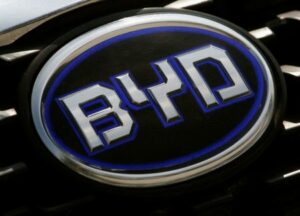 FOTO DE ARCHIVO: El logotipo de la empresa automotriz china BYD se ve en un automóvil afuera de su sede en la ciudad de Shenzhen, en el sur de China, el 23 de febrero de 2010.REUTERS/Bobby Yip/Foto de archivo
