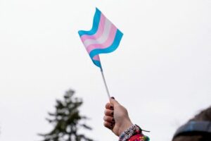 FOTO DE ARCHIVO. Una persona sostiene una bandera trans durante