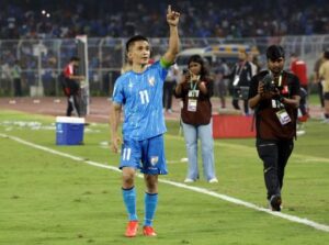 FILE PHOTO: Soccer Football – World Cup – AFC Qualifiers – India v Kuwait – Vivekananda Yuba Bharati Krirangan, Kolkata, India – June 6, 2024 India’s Sunil Chhetri gestures to fans REUTERS/Sahiba Chawdhary/File Photo