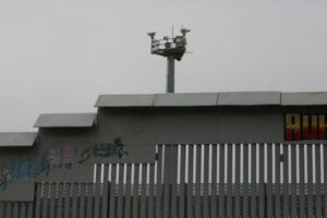 Electronic monitoring equipment stands near the secondary border wall between Mexico and the United States in San Diego, California, U.S., as seen from Tijuana, Mexico March 25, 2025. REUTERS/Jorge Duenes