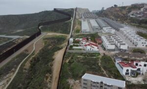 A drone image shows electronic monitoring equipment near the secondary border wall between Mexico and the United States in San Diego, California, U.S., as seen from Tijuana, Mexico March 25, 2025. REUTERS/Jorge Duenes