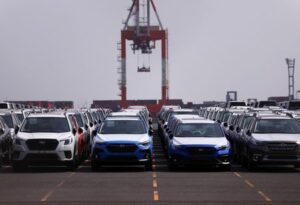 Newly manufactured cars awaiting export are parked at a port in Yokohama, south of Tokyo, Japan March 27, 2025. REUTERS/Issei Kato