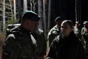 Lithuanian Defence Minister Dovile Sakaliene and Lithuanian Chief of Defence Raimundas Vaiksnoras visit the site of rescue operation at Pabrade training ground, Lithuania, March 26, 2025. LITHUANIAN DEFENCE MINISTRY/Handout via REUTERS