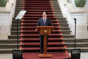 Taiwan’s President Lai Ching-te holds a press conference in Taipei