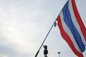 FILE PHOTO: Thailand’s flag is seen as royalists hold an event to support the monarchy in Bangkok, Thailand, October 28,2020. REUTERS/Soe Zeya Tun/File Photo