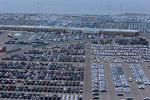 FOTO DE ARCHIVO: Automóviles en la terminal de embarque se muestran desde la vista de un dron en San Diego, California, Estados Unidos. 26 de marzo de 2025. REUTERS/Mike Blake/Archivo