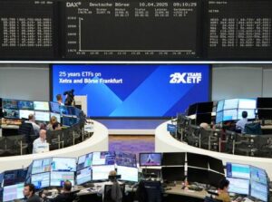 The German share price index DAX graph is pictured at the stock exchange in Frankfurt, Germany, April 10, 2025. REUTERS/Joachim Herrmann