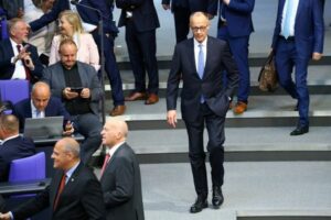 Designated Chancellor Friedrich Merz of the Christian Democratic Union (CDU) arrives on the day of a session of the German lower house of parliament Bundestag, to elect the new German chancellor, in Berlin, Germany May 6, 2025. REUTERS/Lisi Niesner
