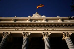 FOTO DE ARCHIVO. Una bandera española ondea sobre la Bolsa May 6, 2025 May 6, 2025 FOTO DE ARCHIVO. Una bandera española ondea sobre la Bolsa de Madrid, España. 1 de junio de 2016. REUTERS/Juan Medina