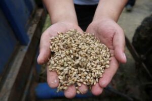 FOTO DE ARCHIVO: Un agricultor sostiene granos de trigo cosechados en un campo de Zhumadian, provincia de Henan, China. 5 de junio de 2023. REUTERS/Ningwei Qin/Archivo
