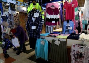 FILE PHOTO: A shopper walks past items displayed for sale at a market stall in Sunderland, Britain, September 28, 2022. REUTERS/Lee Smith/File Photo