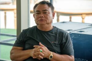Myanmar warlord Saw Chit Thu is pictured during an interview with local media at Shwe Kokko city, a casino, entertainment and tourism complex in Myawaddy, Myanmar, February 18, 2025. REUTERS/Stringer
