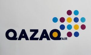 FILE PHOTO: The logo of Kazakhstan’s regional airline Qazaq Air is pictured during a media event dedicated to a one year anniversary of the company’s founding, in Almaty, Kazakhstan, April 7, 2016. REUTERS/Shamil Zhumatov/File Photo
