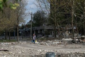FILE PHOTO: A resident walks next to buildings damaged by Russian military strikes in the front line town of Pokrovsk, amid Russia’s attack on Ukraine, in Donetsk region, Ukraine April 23, 2025. REUTERS/Nina Liashonok/File Photo