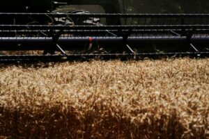 FOTO DE ARCHIVO: Una plataforma Draper cosecha trigo de invierno cerca de Skedee, Oklahoma, Estados Unidos. 13 de junio 2024. REUTERS/Nick Oxford/Archivo