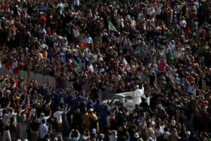 Misa inaugural del papa León XIV en el Vaticano May 18, 2025 May 18, 2025 El papa León XIV llega en el papamóvil para su misa inaugural en el Vaticano, el 18 de mayo de 2025. REUTERS/ELOISA LOPEZ