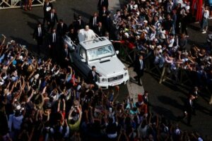 Pope Leo XIV’s inaugural Mass at the Vatican May 18, 2025 May 18, 2025 Pope Leo XIV arrives on the popemobile for his inaugural Mass at the Vatican, May 18, 2025. REUTERS/vincenzo livieri