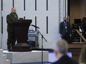 Newly appointed Minister of Defence Murhaf Abu Qasra speaks during a Ministerial formation of the government of the Syrian Arab Republic, in Damascus, Syria March 29, 2025. REUTERS/Khalil Ashawi/File Photo