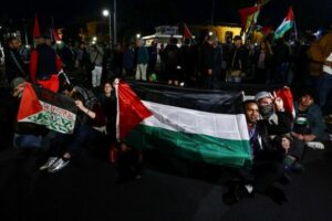 Pro-Palestinian activists stage a protest to condemn the interception of the vessels of the Global Sumud Flotilla, in Rome, Italy, October 1, 2025 REUTERS/Yara Nardi TPX IMAGES OF THE DAY