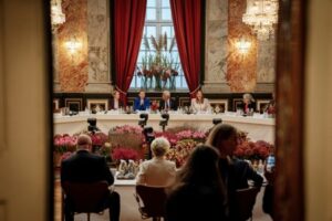 Die Hohe Vertreterin für Außen- und Sicherheitspolitik und Vizepräsidentin des Europäischen Rates, Kaja Kallas, der Präsident des Europäischen Rates, Antonio Costa, die dänische Ministerpräsidentin Mette Frederiksen und die Präsidentin des Europäischen Parlaments, Roberta Metsola, nehmen am 1. Oktober 2025 an einem informellen Gipfeltreffen im dänischen Parlament im Schloss Christiansborg in Kopenhagen, Dänemark, teil. Mads Claus Rasmussen/Ritzau Scanpix/via REUTERS ACHTUNG REDAKTIONEN – DIESES BILD WURDE VON EINER DRITTEN PARTEI ZUR VERFÜGUNG GESTELLT. DÄNEMARK AUSGESCHLOSSEN. KEIN KOMMERZIELLER ODER REDAKTIONELLER VERKAUF IN DÄNEMARK.