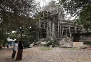 Relatives of victims inspect the scene of wooden scaffolding collapse at the St. Mary Orthodox Church that killed faithful in Arerti, Ethiopia, October 2, 2025. REUTERS/ Tiksa Negeri