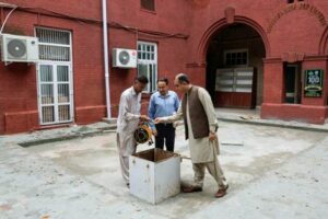 Adnan Hassan, Senior Research Officer, checks the dipmeter to examine the ground-water level from a borehole, at the Irrigation Research Institute in Punjab Irrigation Department, in Lahore, Pakistan August 13, 2025. REUTERS/Akhtar Soomro