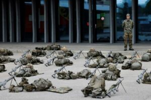 A soldier stands next to equipment at a Swiss army October 3, 2025 October 3, 2025 A soldier stands next to equipment at a Swiss army base in Bure, Switzerland May 26, 2025. REUTERS/Stefan Wermuth