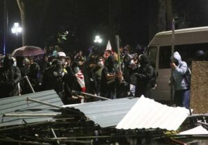 Protesters set up a barricade during an opposition rally on the day of local elections in Tbilisi, Georgia October 4, 2025. REUTERS/Irakli Gedenidze