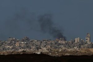 Smoke rises from Gaza after an explosion, as seen from October 5, 2025 October 5, 2025 Smoke rises from Gaza after an explosion, as seen from the Israeli side of the border, October 5, 2025. REUTERS/Amir Cohen