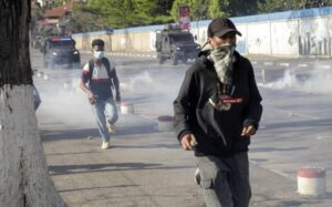 Protesters flee from police officers during a nationwide youth-led protest against frequent power outages and water shortages, in Antananarivo, Madagascar, October 4, 2025. REUTERS/Zo Andrianjafy