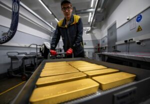 An employee transports ingots of 99.99 percent pure gold in a workroom during production at Krastsvetmet precious metals plant in the Siberian city of Krasnoyarsk, Russia, May 23, 2024. REUTERS/Alexander Manzyuk