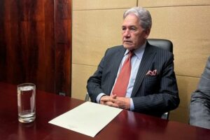 New Zealand’s Foreign Minister Winston Peters attends a press conference in Beijing, China February 26, 2025. REUTERS/Laurie Chen/Pool