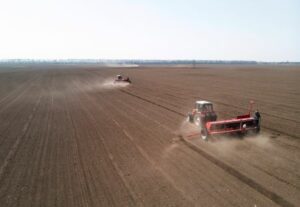 FOTO DE ARCHIVO: Trabajadores agrícolas operan tractores para sembrar soja en un campo cerca del pueblo de Husachivka en la región de Kiev, Ucrania. 17 de abril de 2020. REUTERS/Anton Muraviov/