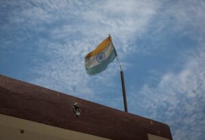 FOTO DE ARCHIVO: Una bandera india se ve en la parte superior de una casa, que fue alcanzado durante un bombardeo transfronterizo la semana pasada, en Pallanwala, un pueblo fronterizo en la región de Jammu. 12 de mayo 2025. REUTERS/Adnan Abidi