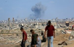 El humo se eleva tras las explosiones en medio de la ofensiva militar israelĂ en la ciudad de Gaza, como se ve desde el centro de la Franja de Gaza, el 6 de octubre de 2025. REUTERS/Dawoud Abu Alkas