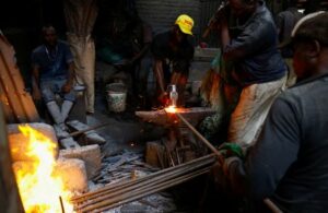ARCHIV: Schmiede brennen Stahlstangen, um Bauwerkzeuge herzustellen, in der Kamukunji „Jua Kali”-Hütte, was auf Suaheli „heiße Sonne” bedeutet, im Bezirk Kamukunji in Nairobi, Kenia, am 10. Juli 2025. REUTERS/Thomas Mukoya