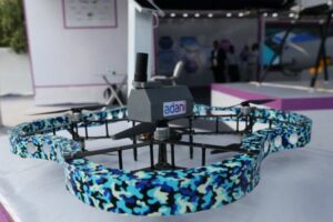 A view shows an Unmanned Aerial Vehicle (UAV) called Partha which is a drone solution for methane gas leakage detection by Adani Defence and Aerospace, at their stall during the drone exhibition at Bharat Drone Shakti 2023 organised by Indian Air Force(IAF) and Drone Federation of India(DFI) at the Hindon Airbase in Ghaziabad, India, September 25, 2023. REUTERS/Anushree Fadnavis