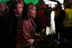 Swedish activist Greta Thunberg holds a white rose on the day she attends a press conference arranged by the Global Movement to Gaza Sweden in connection with the arrival of the released Swedish participants in the Global Sumud Flotilla, in Stockholm, Sweden, October 7, 2025. REUTERS/Tom Little