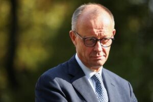 ARCHIV: Bundeskanzler Friedrich Merz blickt auf eine Pressekonferenz am zweiten Tag einer zweitägigen Kabinettssitzung in der Villa Borsig in Berlin, Deutschland, 1. Oktober 2025. REUTERS/Liesa Johannssen