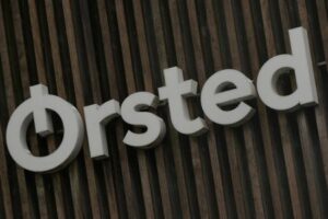 A view shows the logo of the company Orsted at