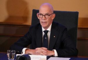 Hans Ellegren, Permanent Secretary of the Royal Swedish Academy of Sciences, waits to announce this year’s Nobel Prize winners in Physics, by the Royal Swedish Academy of Sciences at a press conference in Stockhom, Sweden October 7, 2025. REUTERS/Tom Little
