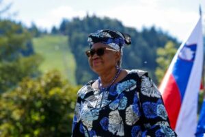 Director-General World Trade Organization (WTO) Ngozi Okonjo-Iweala walks on the opening day of Bled Strategic Forum in Bled, Slovenia September 1, 2025. REUTERS/Borut Zivulovic