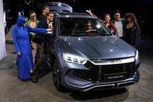Influencers pose for a photo at the launch event of Chinese electric vehicle (EV) maker BYD in Buenos Aires, Argentina, October 8, 2025. REUTERS/Alessia Maccioni