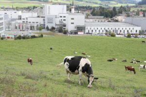 FILE PHOTO: Cows are seen on a meadow in front of a Nestle plant in Konolfingen, Switzerland September 28, 2020. REUTERS/Arnd Wiegmann/File Photo
