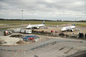 Ryanair planes are seen at Luton Airport. October 8, 2025 October 8, 2025 Ryanair planes are seen at Luton Airport, London, Britain, March 17, 2020. REUTERS/Peter Cziborra