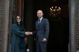 French Minister for Europe and Foreign Affairs Jean-Noel Barrot welcomes Emirati Minister of State for International Cooperation Reem Ebrahim Al-Hashimi prior to a Ministerial meeting on the implementation of the Middle East peace plan at the Quai d’Orsay in Paris, France, October 2025. Christophe Petit Tesson/Pool via REUTERS